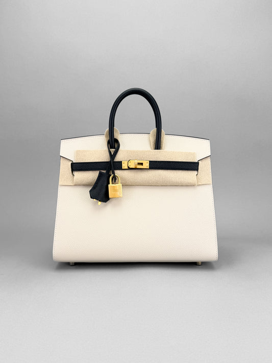 HERMES Birkin 25 Sellier Epsom HSS Panda Craie/ Black Brushed Gold Hardware Unworn