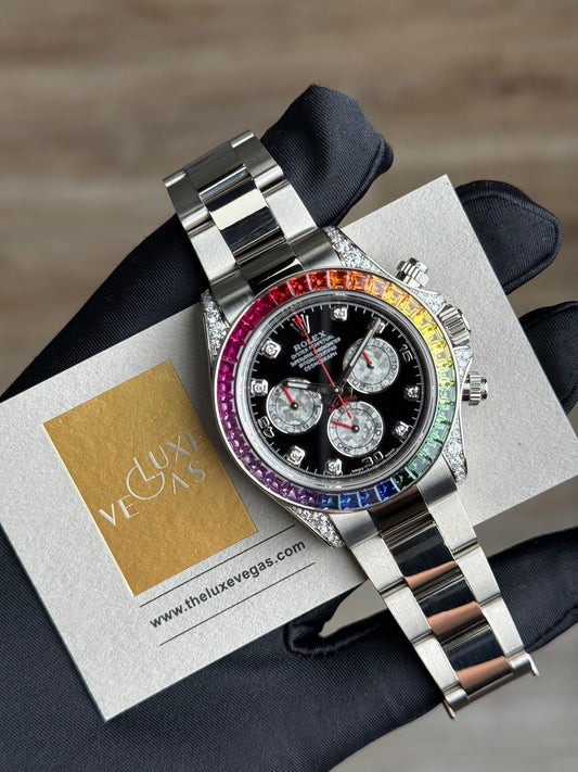 ROLEX COSMOGRAPH DAYTONA 116599RBOW BLACK DIAMOND RAINBOW SAPPHIRE PREOWN