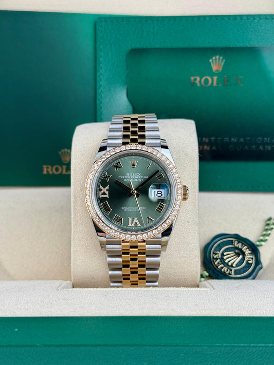Rolex DATEJUST 36mm 126283RBR OLIVE GREEN ROMAN DIAMOND VIIX JUBILEE UNWORN