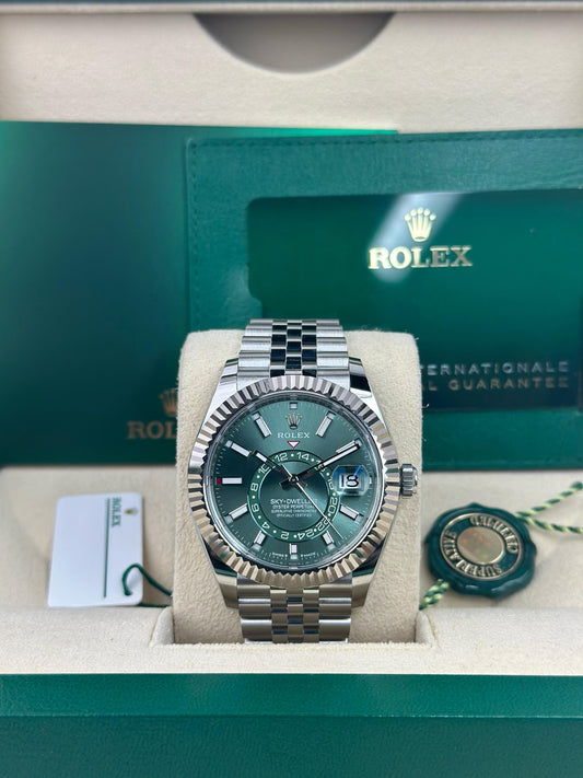 Rolex SKY-DWELLER 336934 OLIVE GREEN INDEX FLUTED JUBILEE UNWORN