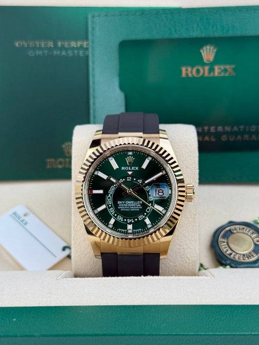 Rolex SKY-DWELLER 336238 GREEN Oysterflex UNWORN