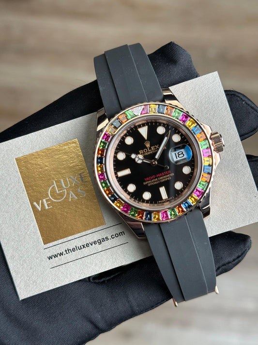 ROLEX YACHT-MASTER 40MM 116695SATS BLACK GUMMY ROSE GOLD GEM SET BEZEL OYSTERFLEX LIKE NEW