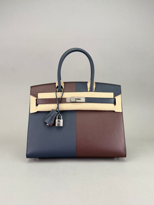HERMES Birkin 30 Sellier Epsom Casaque Indigo/Rouge/R Texas Gold Hardware