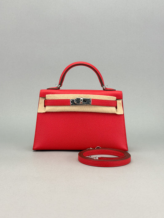 HERMES Mini Kelly 20 Sellier Epsom Rouge Radieux Palladium Hardware Unworn