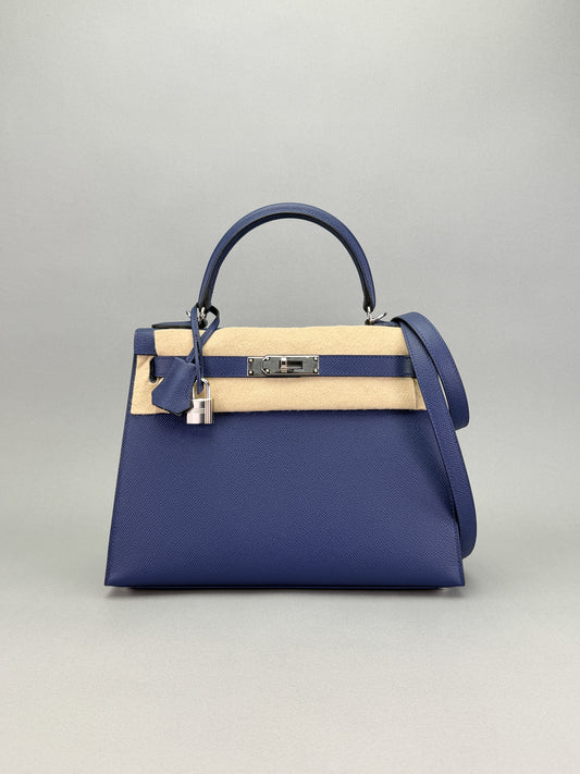 HERMES Kelly 28 Sellier Epsom Blue Saphir Palladium Hardware Unworn