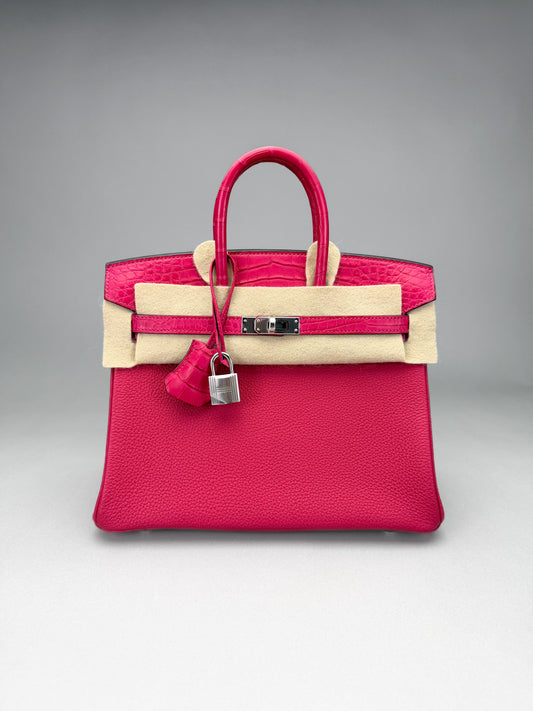 HERMES Birkin 25 Retourne Touch Alligator Framboise Palladium Hardware Unworn