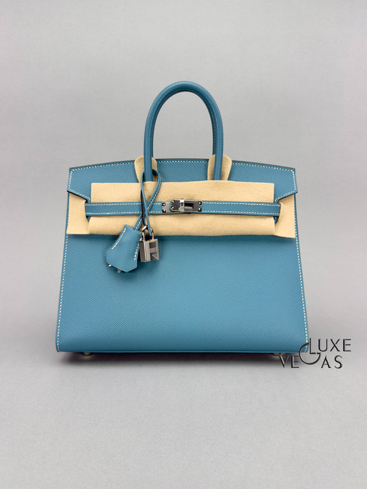 HERMES Birkin 25 Epsom New Blue Jean Palladium Hardware Unworn