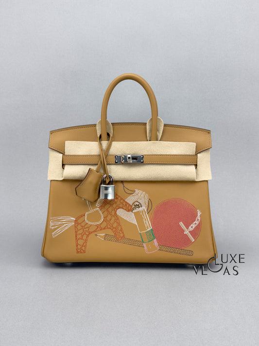 HERMES Birkin 25 Swift In And Out Biscuit Palladium Hardware Unworn