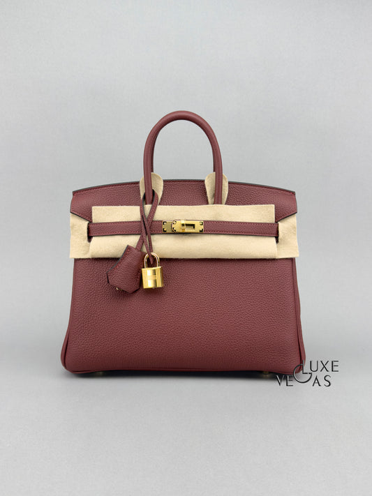 HERMES Birkin 25 Togo Rouge H Gold Hardware Unworn