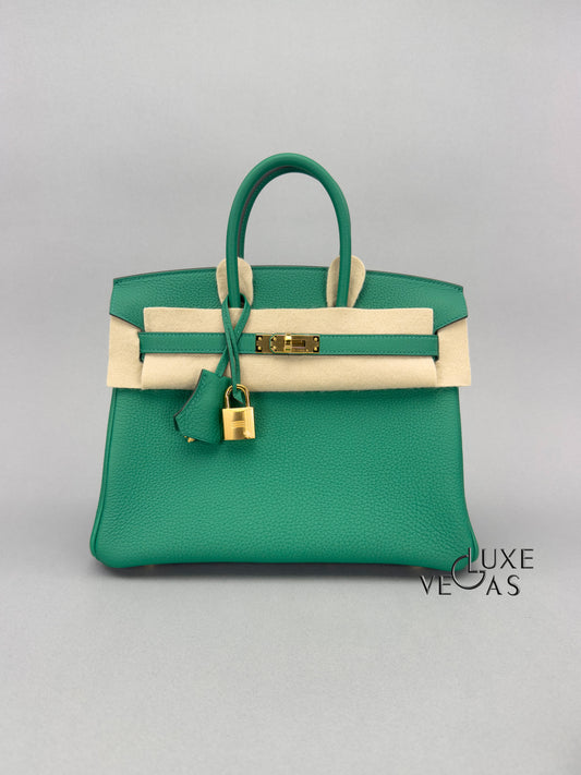 HERMES Birkin 25 Togo Vert Vertigo Gold Hardware Unworn