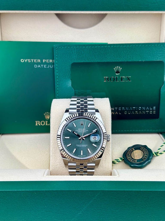 Rolex DATEJUST 41mm 126334 MINT GREEN INDEX JUBILEE UNWORN