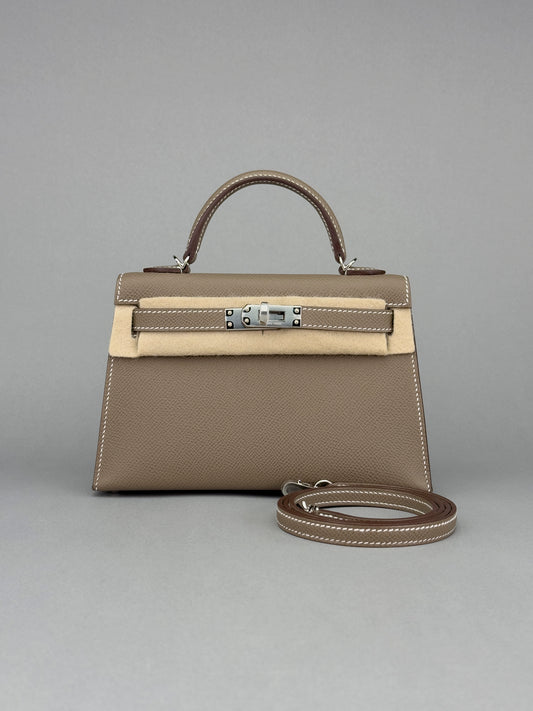 HERMES Mini Kelly 20 Sellier Epsom Etoupe Palladium Hardware Unworn