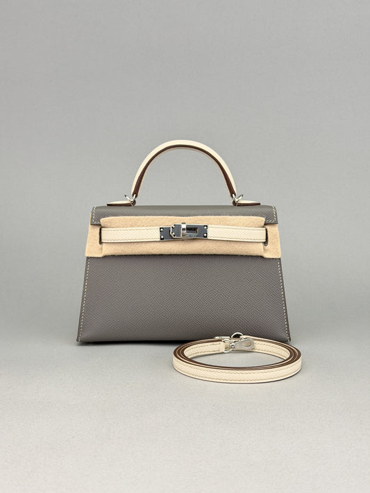 HERMES Mini Kelly 20 Epsom HSS Gris Meyer/ Craie Palladium Hardware Unworn