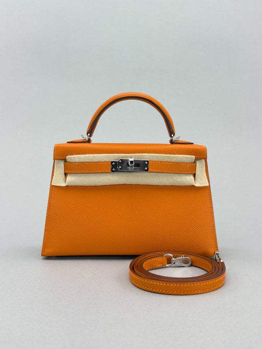 HERMES Mini Kelly 20 Sellier Epsom Orange Palladium Hardware Unworn