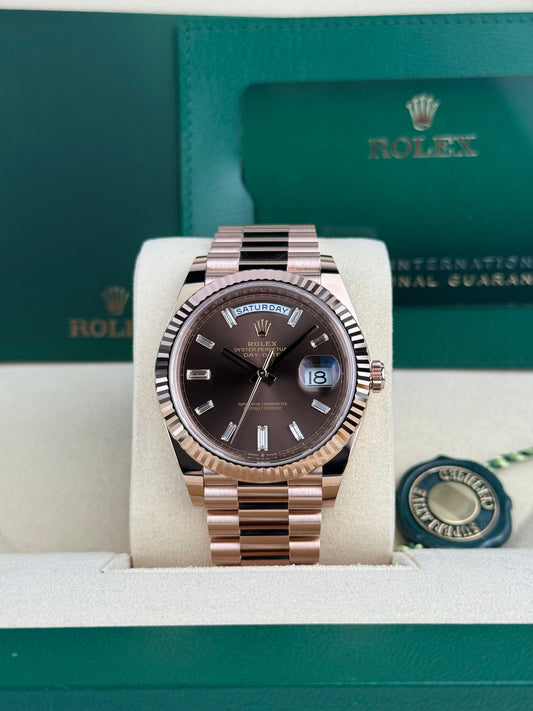 Rolex DAY-DATE 228235 CHOCOLATE BAGUETTE FLUTED PRESIDENT UNWORN