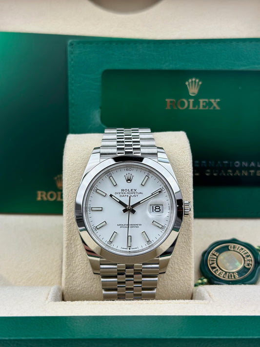 Rolex DATEJUST 41mm 126300 WHITE INDEX SMOOTH JUBILEE UNWORN