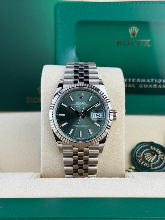 Rolex DATEJUST 36mm 126234 MINT GREEN INDEX JUBILEE UNWORN
