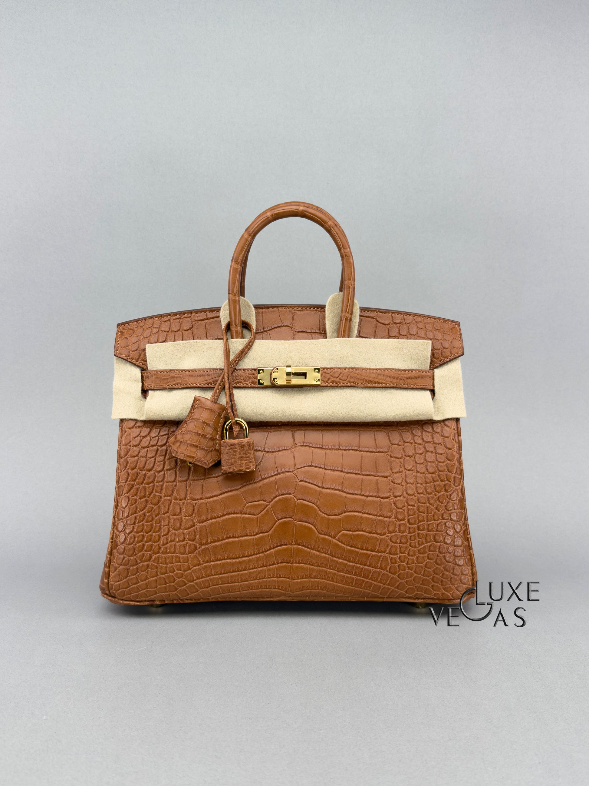 HERMES Birkin 25 Matte Alligator Gold Gold Hardware