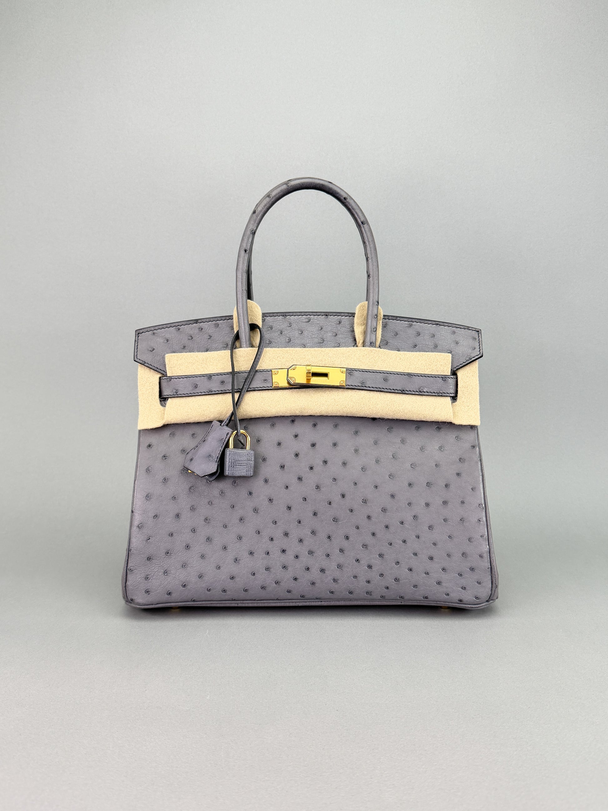 HERMES Birkin 30 Retourne Ostrich Gris Agate Gold Hardware Unworn