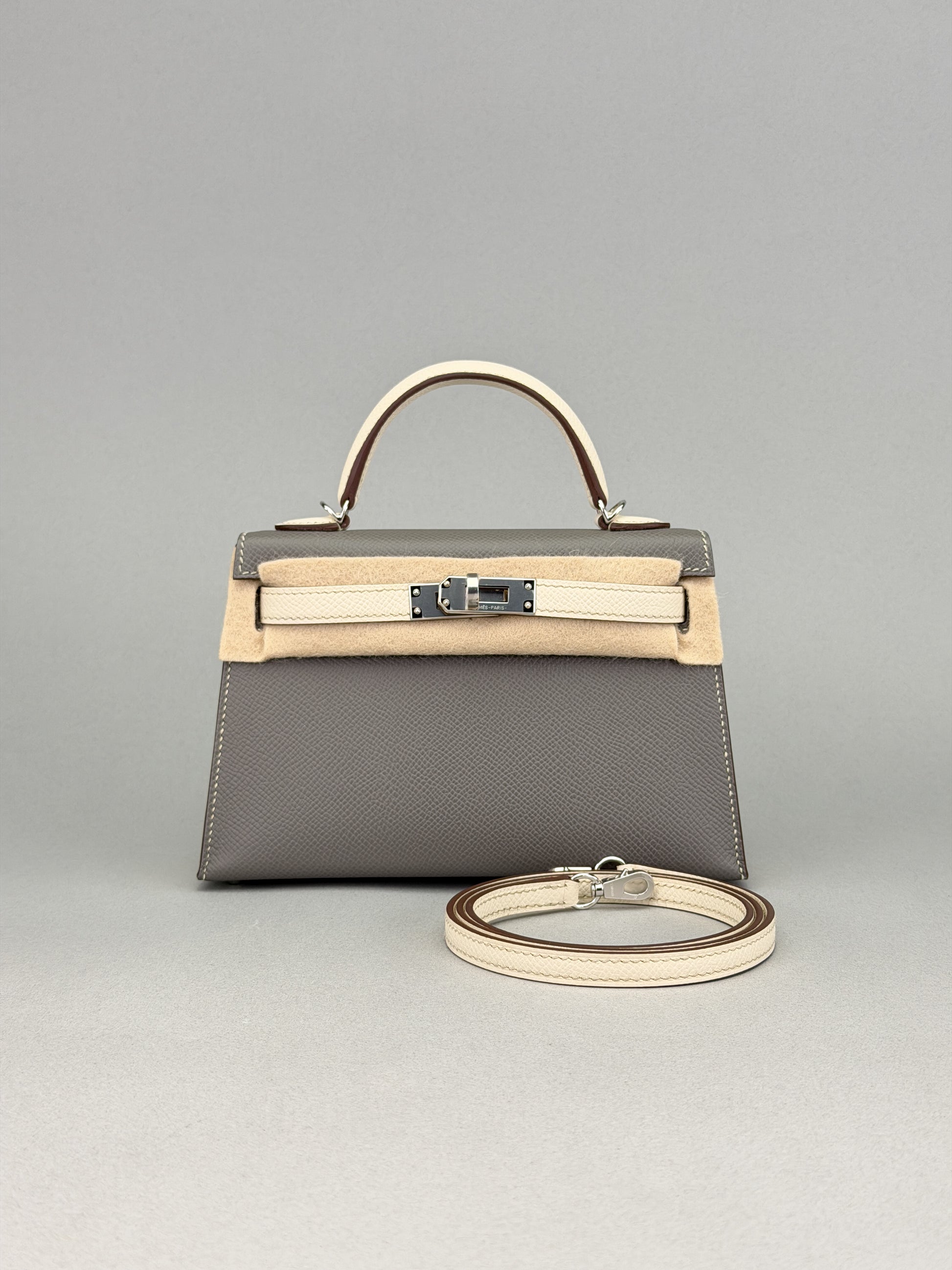 HERMES Mini Kelly 20 Epsom HSS Gris Meyer/ Craie Palladium Hardware Unworn