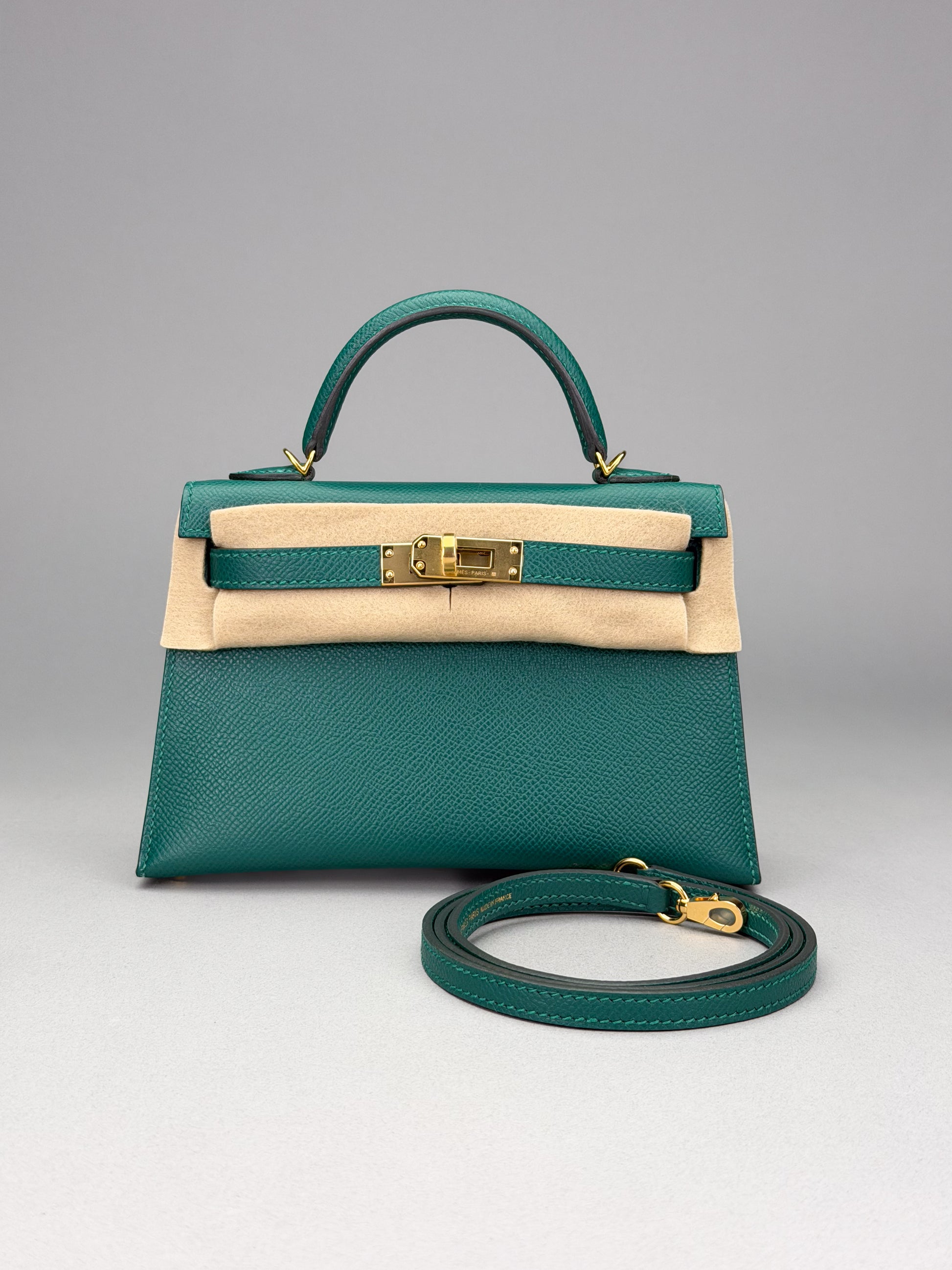 HERMES Mini Kelly 20 Sellier Epsom Vert Vertigo Gold Hardware Unworn