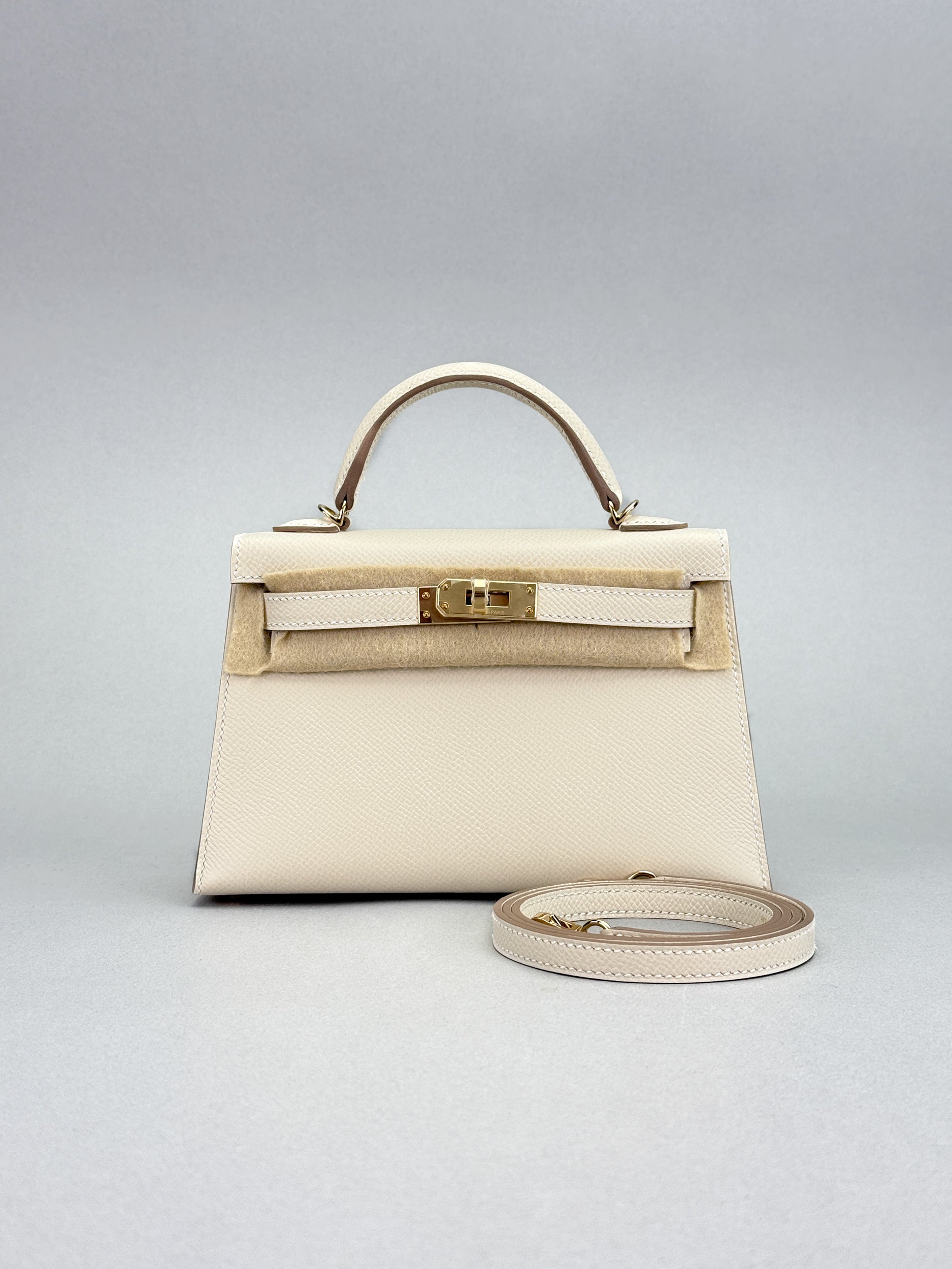 HERMES Mini Kelly 20 Sellier Epsom Craie Permabrass Gold Hardware Unworn