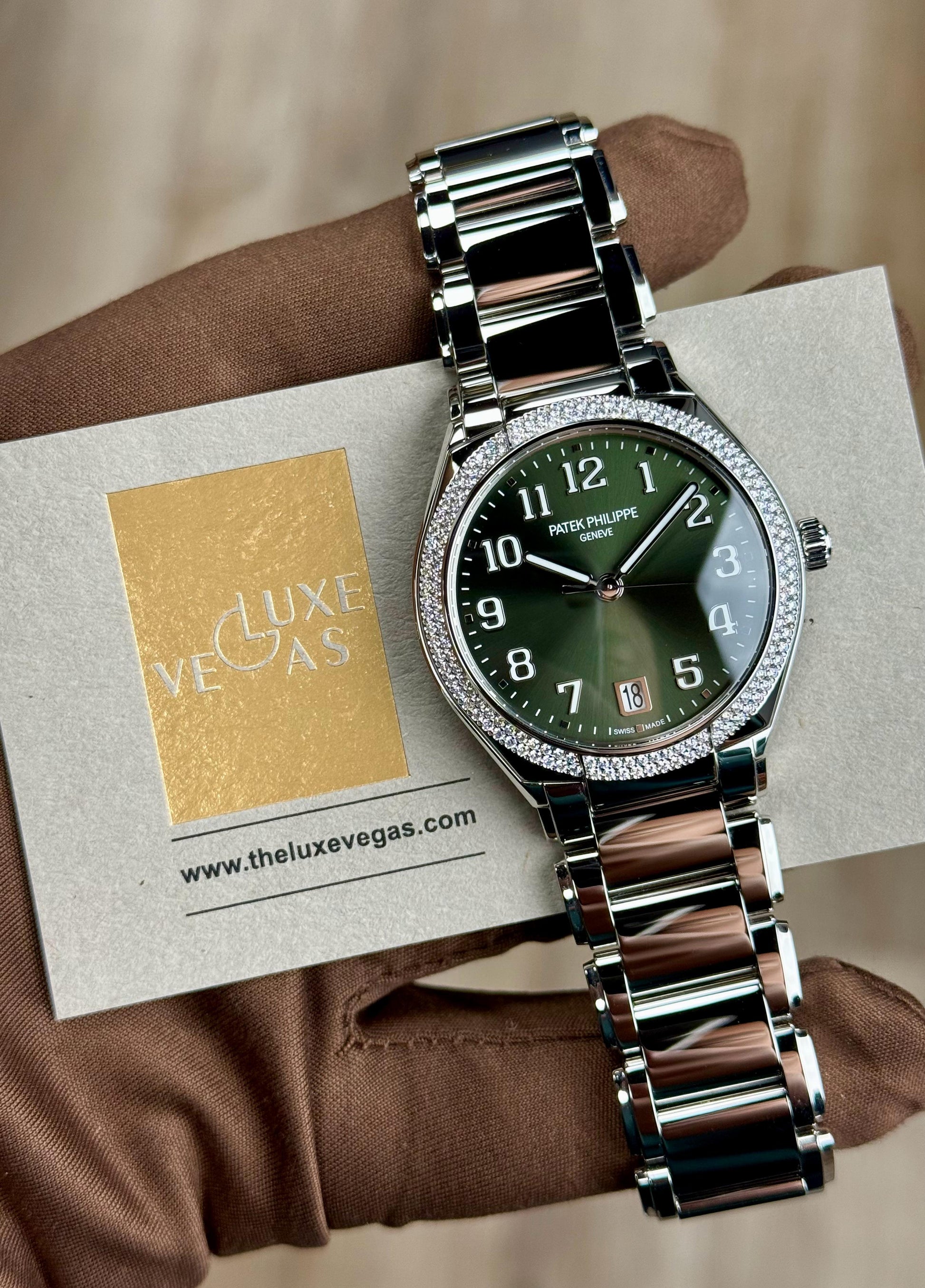 Patek Philippe Twenty~4 7300/1200A-001 Olive Green Diamond Bezel Bracelet Unworn