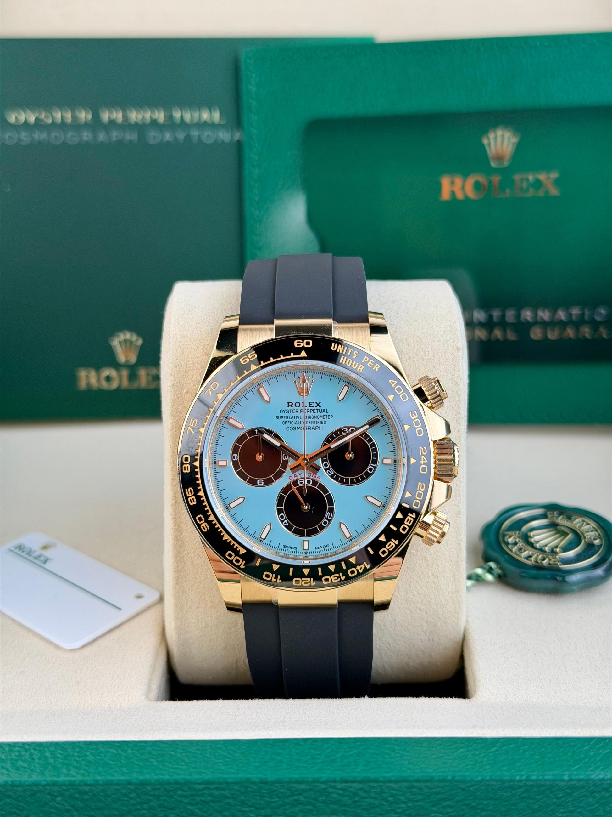 ROLEX COSMOGRAPH DAYTONA 126518LN TURQUOISE BLUE/BLACK INDEX OYSTERFLEX UNWORN