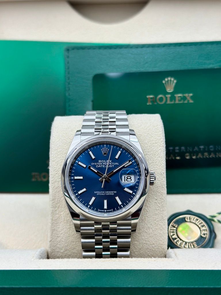 Rolex DATEJUST 36mm 126200 BLUE INDEX JUBILEE UNWORN