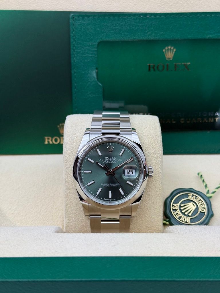 Rolex DATEJUST 36mm 126200 MINT GREEN MINT INDEX OYSTER UNWORN