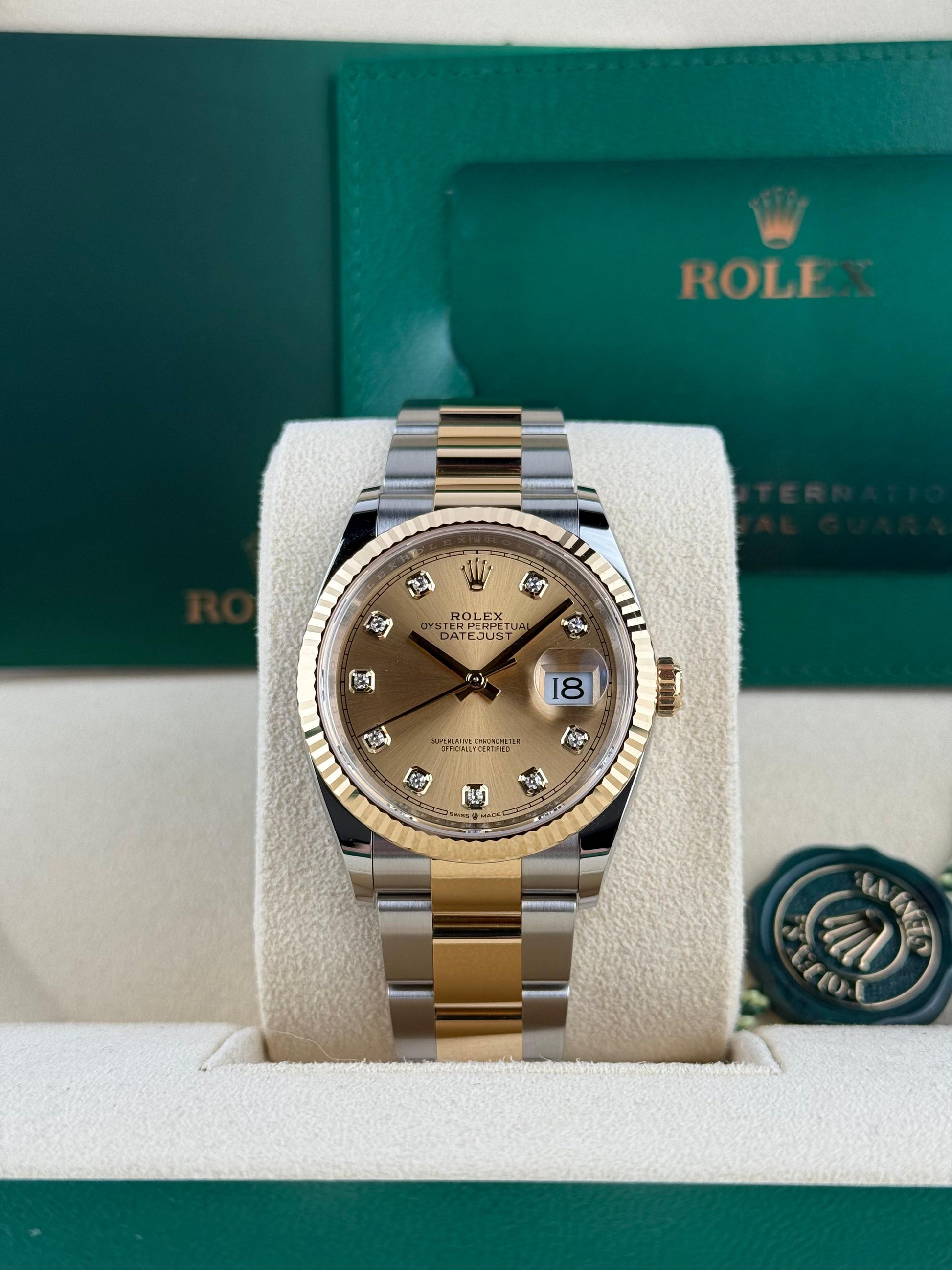 Rolex DATEJUST 36mm 126233 CHAMPAGNE DIAMOND OYSTER UNWORN