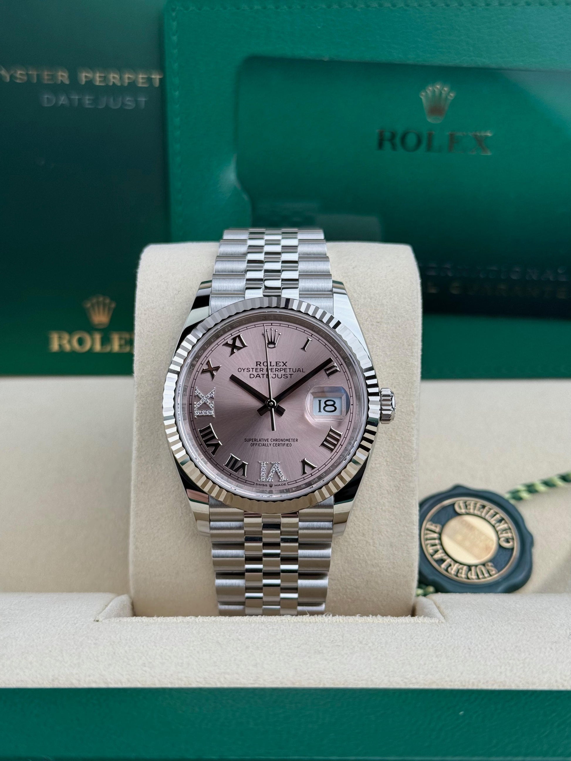 Rolex DATEJUST 36mm 126234 PINK ROMAN DIAMOND IVXI JUBILEE UNWORN