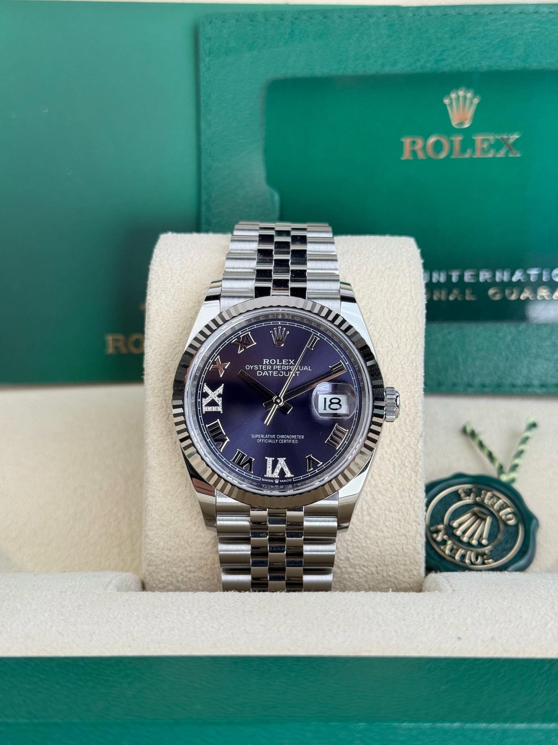 Rolex DATEJUST 36mm 126234 AUBERGINE ROMAN DIAMOND VIIX JUBILEE UNWORN