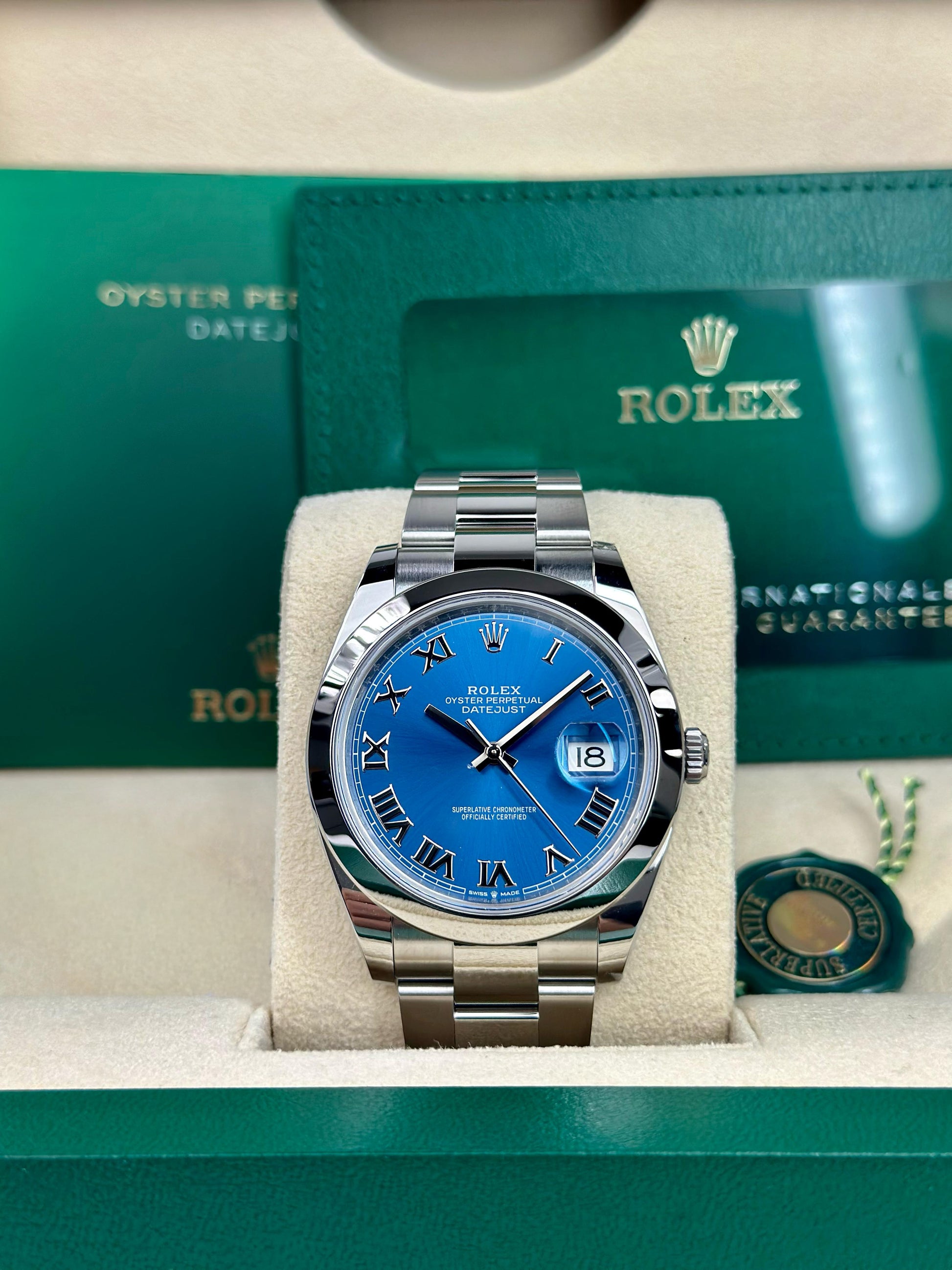 Rolex DATEJUST 41mm 126300 BLUE ROMAN OYSTER UNWORN