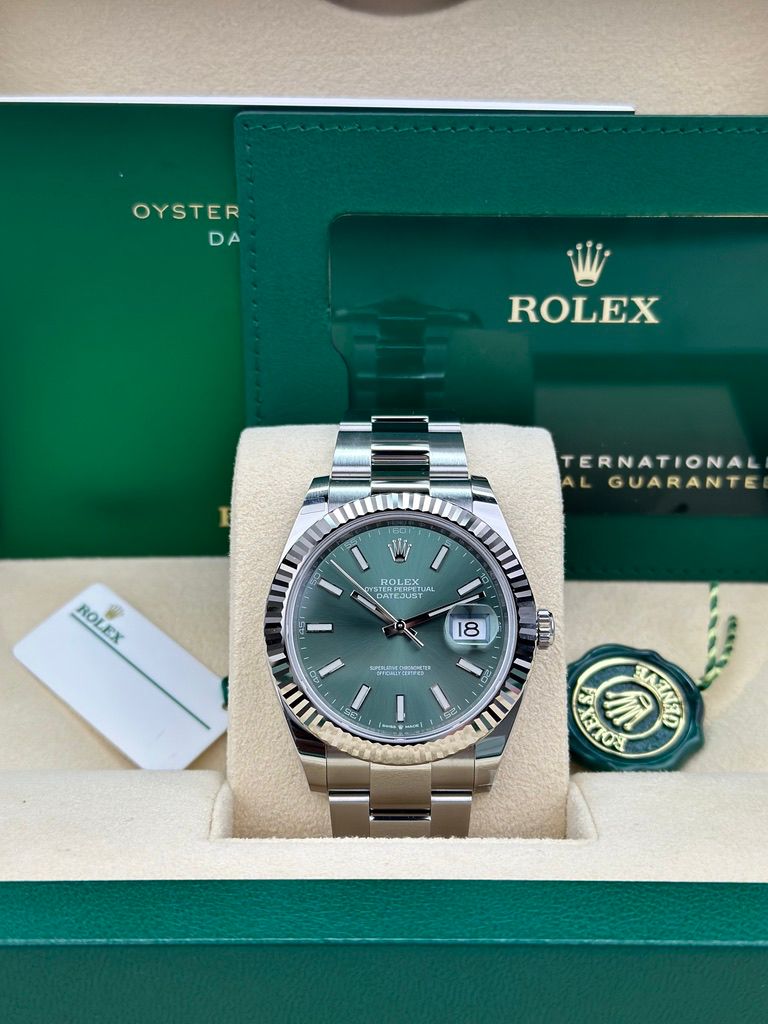 Rolex DATEJUST 41mm 126334 MINT GREEN INDEX OYSTER UNWORN