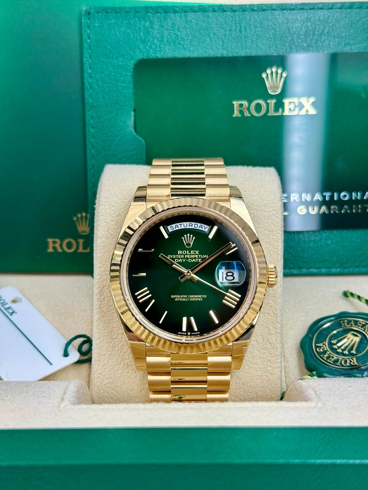 Rolex DAY-DATE 228238 GREEN OMBRE ROMAN FLUTED PRESIDENT UNWORN