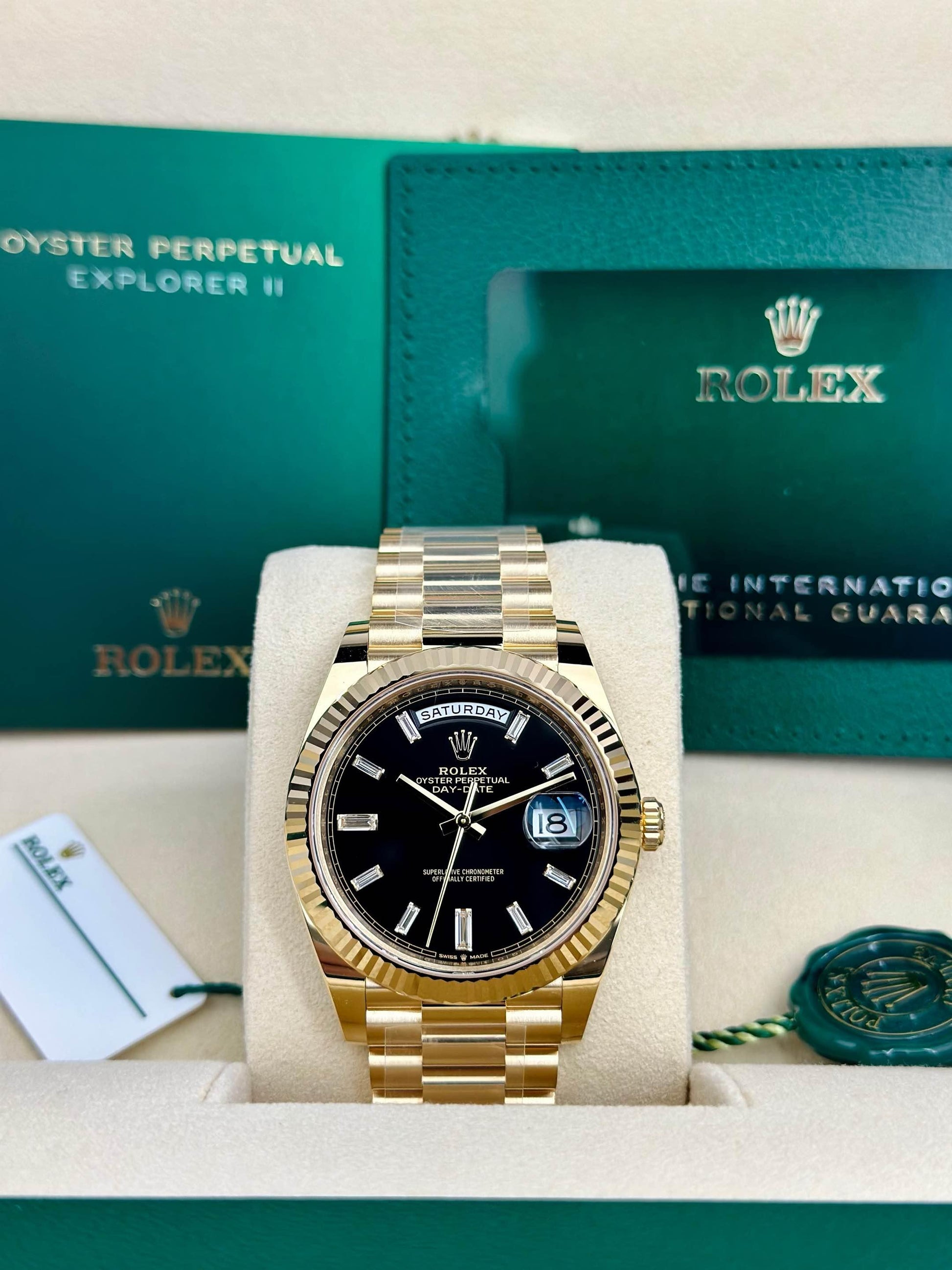 Rolex DAY-DATE 228238 BLACK BAGUETTE FLUTED PRESIDENT UNWORN