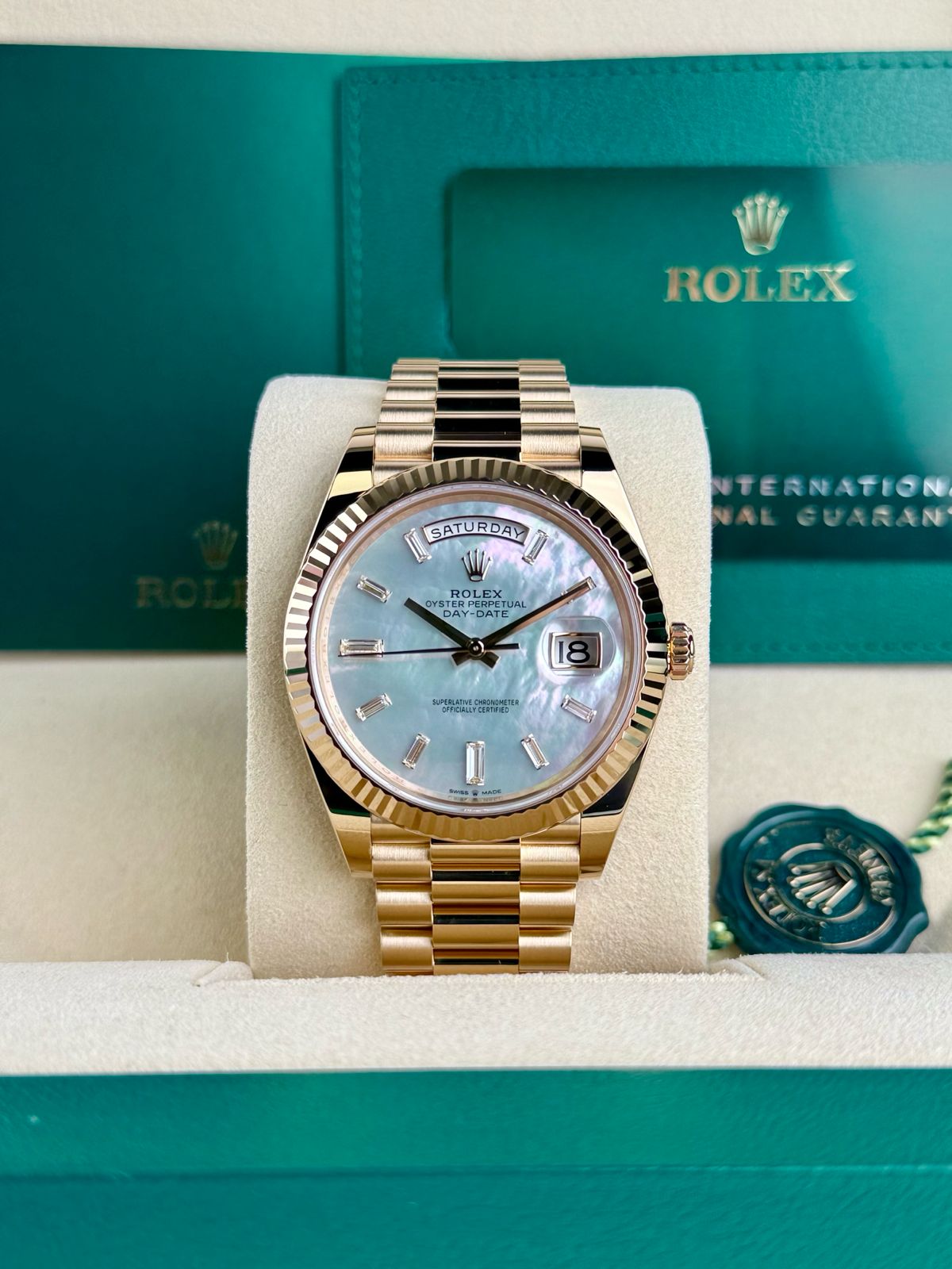 DIAL: | Mother of Pearl set with Baguette Diamonds |