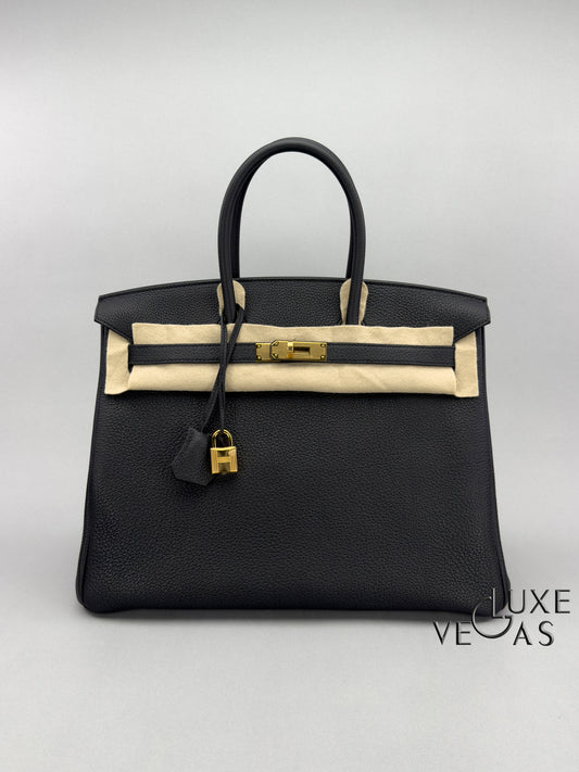 HERMES Birkin 35 Retourne Togo Black Gold Hardware Unworn