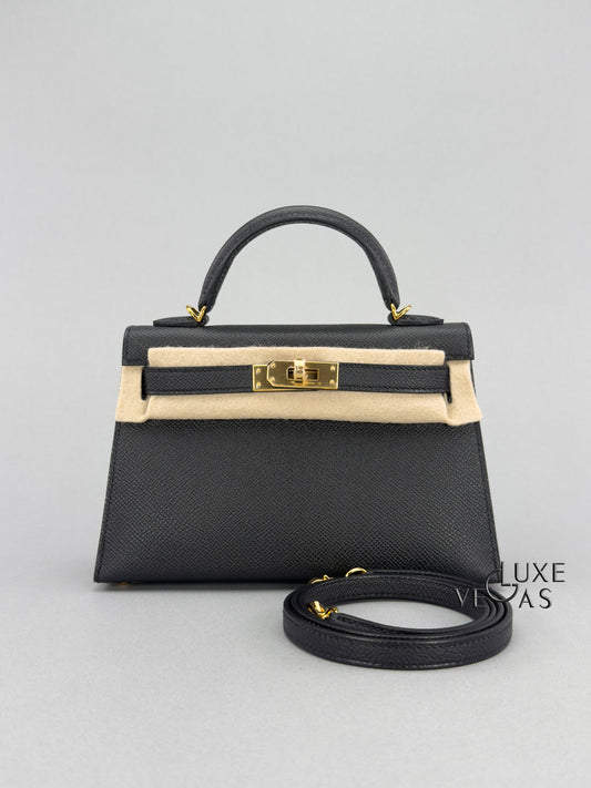 HERMES Mini Kelly 20 Sellier Epsom Black/Noir Gold Hardware Unworn