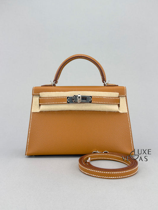 HERMES Mini Kelly 20 Epsom Gold Palladium Hardware Unworn