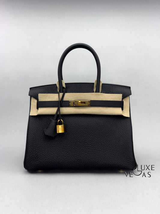 HERMES Birkin 30 Retourne Togo Black Gold Hardware Unworn