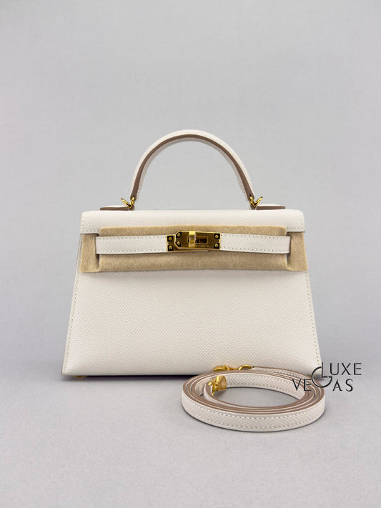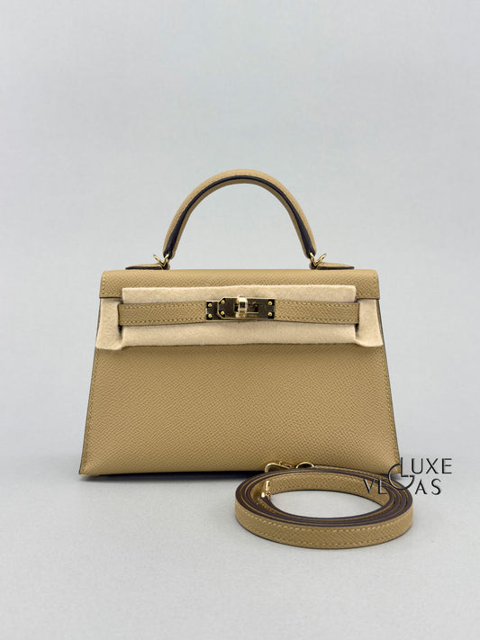 HERMES Mini Kelly 20 Sellier Epsom Poussiere Permabrass Hardware Unworn