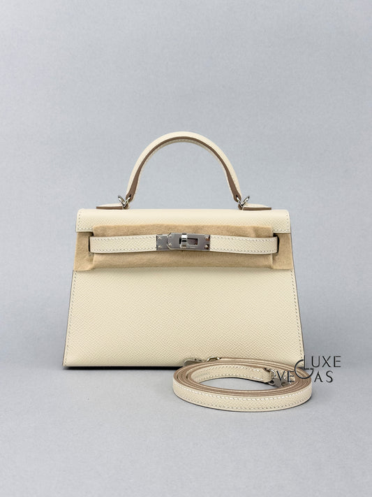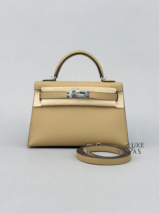 HERMES Mini Kelly 20 Sellier Epsom Poussiere Palladium Hardware Unworn