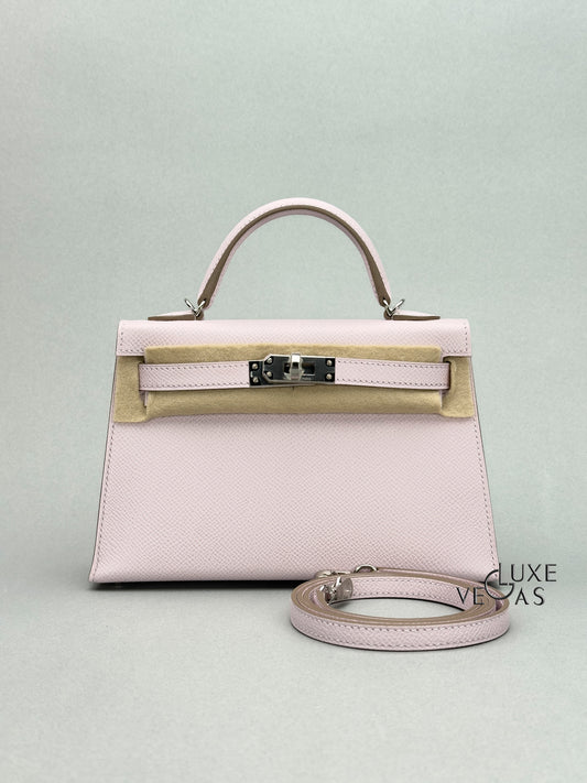 HERMES Mini Kelly 20 Sellier Epsom Mauve Pale Palladium Hardware Unworn
