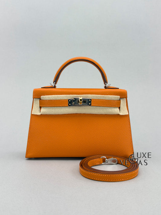 HERMES Mini Kelly 20 Sellier Epsom Orange Electrum Hardware Unworn