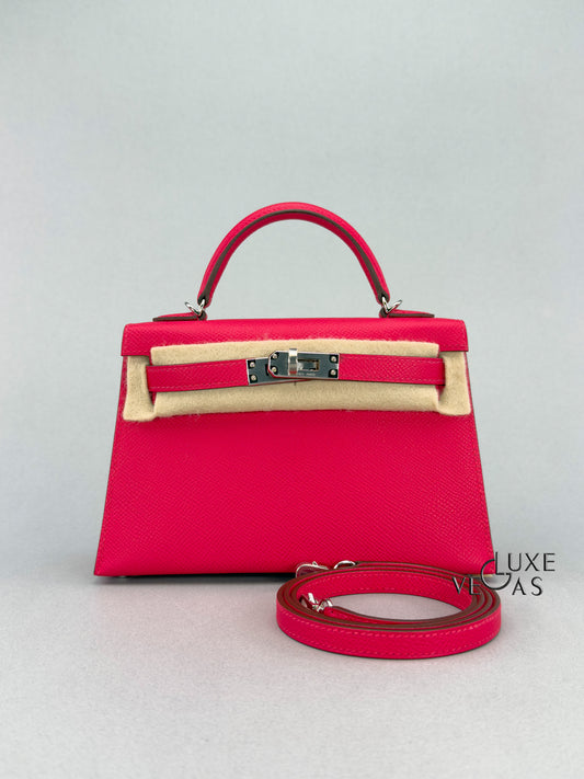 HERMES Mini Kelly 20 Sellier Epsom Rose Extreme Palladium Hardware Unworn