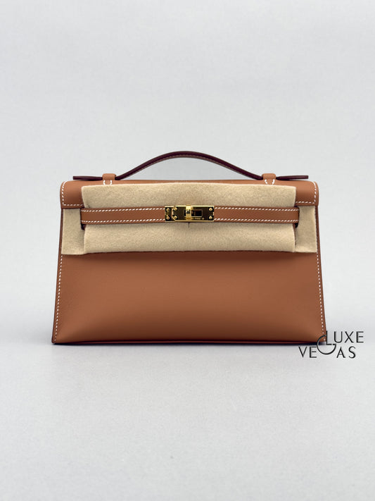 HERMES Kelly Pochette Swift Gold Gold Hardware Unworn