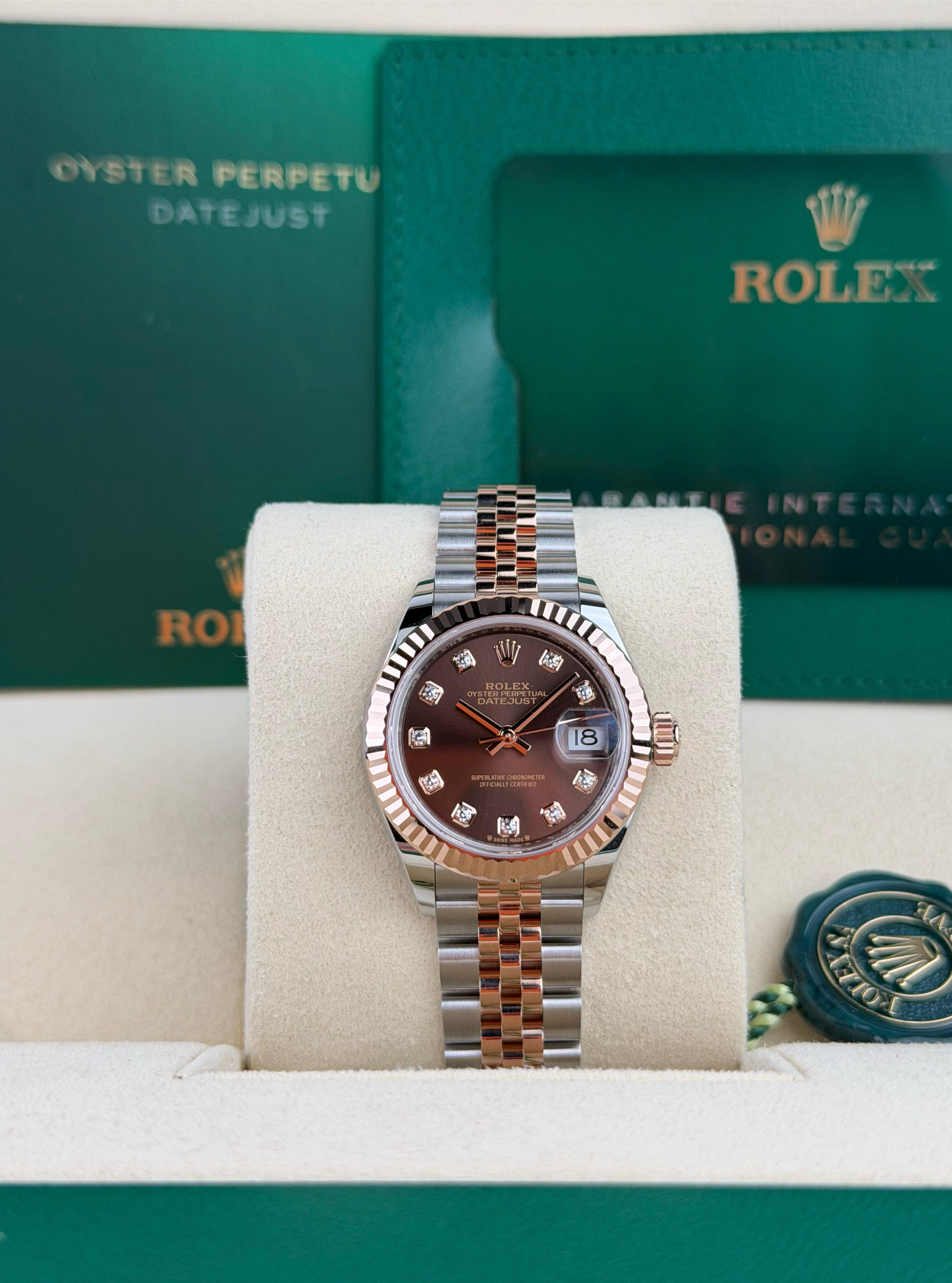 | DIAL: | Chocolate brown set with diamonds |